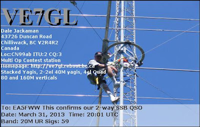 Resultados provisionales obtenidos en el pasado CQ WPX SSB Contest celebrado los días 30 y 31 de marzo de 2013. En la categoría "Assisted Low All Bands", quedo en el puesto 40 de 509 participantes del mundo, 23 de 264 de continente y 1º de 12 participantes de España.![]() |